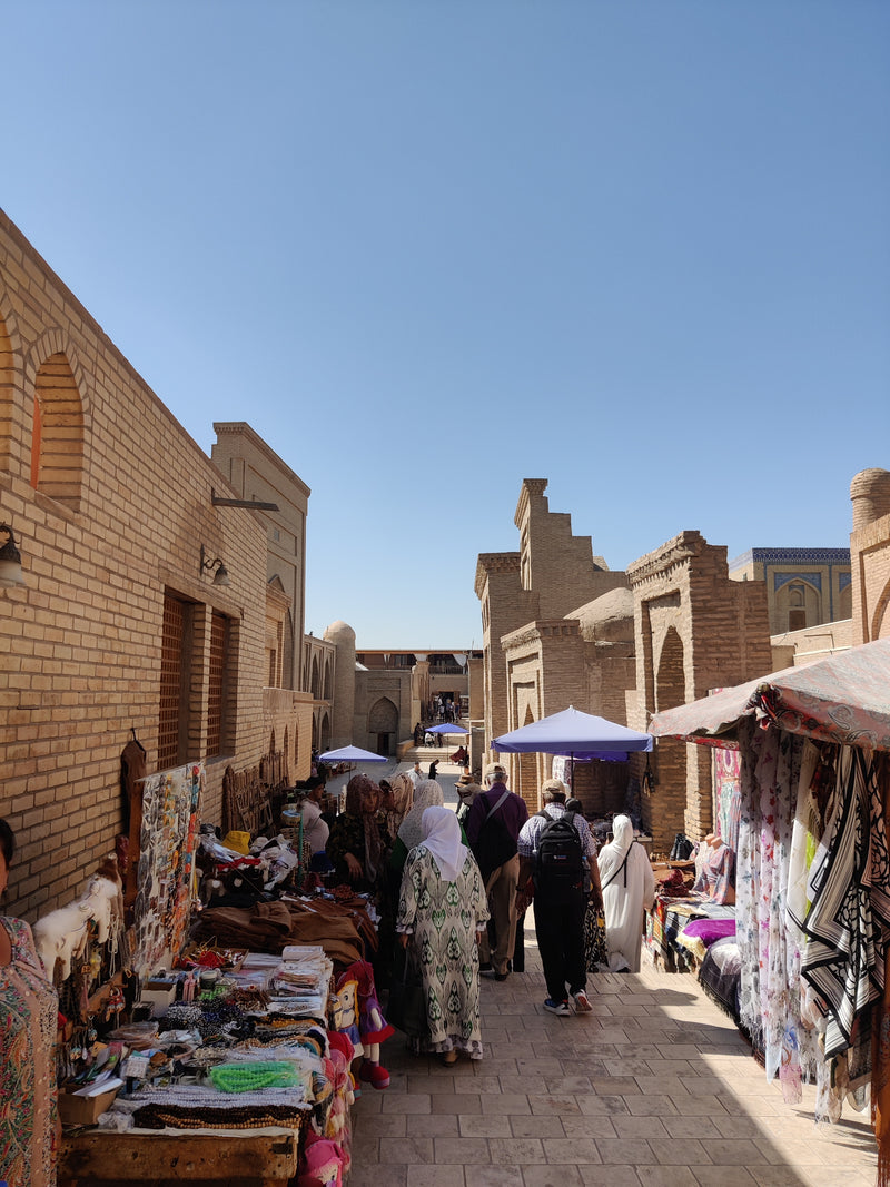 • After lunch, continue to the atmospheric Juma Mosque, famed for its forest of carved wooden columns. Explore the ornate Tash-Khauli Palace, including its former harem quarters, and wander through the historic Caravan Bazaar, once a bustling stop for Silk Road traders.