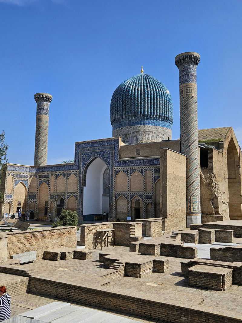 • Begin at the majestic Gur-e-Amir, the final resting place of Tamerlane (Amir Timur). Its striking turquoise dome and intricate interior decoration reflect the grandeur of Timurid artistry.